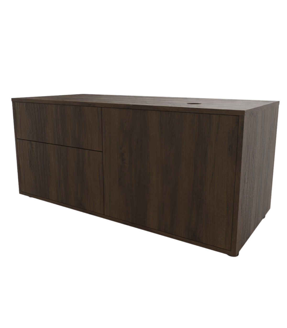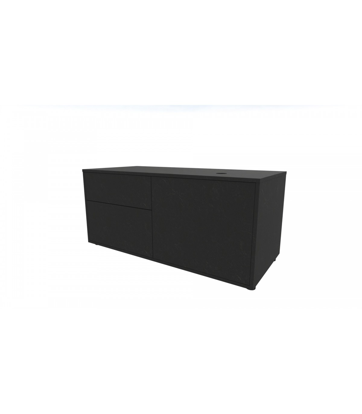 La struttura interna è realizzata con pannelli di particelle di legno sp. mm 18 nobilitati in melaminico colore NERO 59 o STONE GREY 44 rifiniti perimetralmente con bordo ABS sp. mm 0,45 in tinta con la superficie.