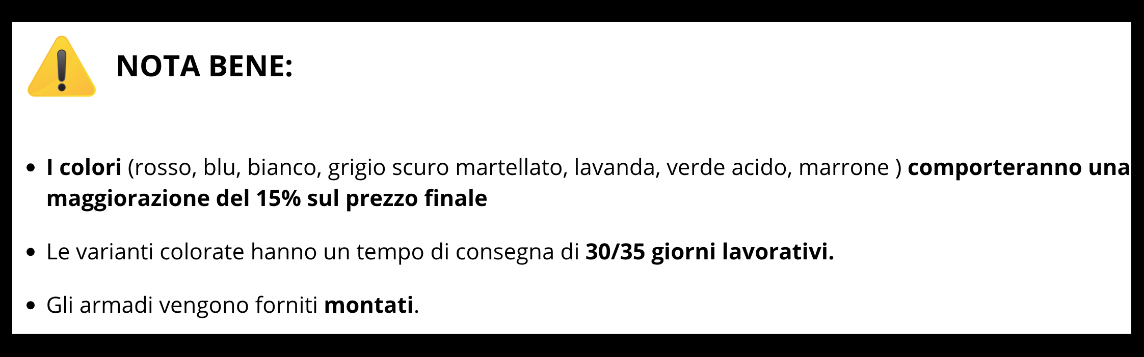 Prodotto fornito montato