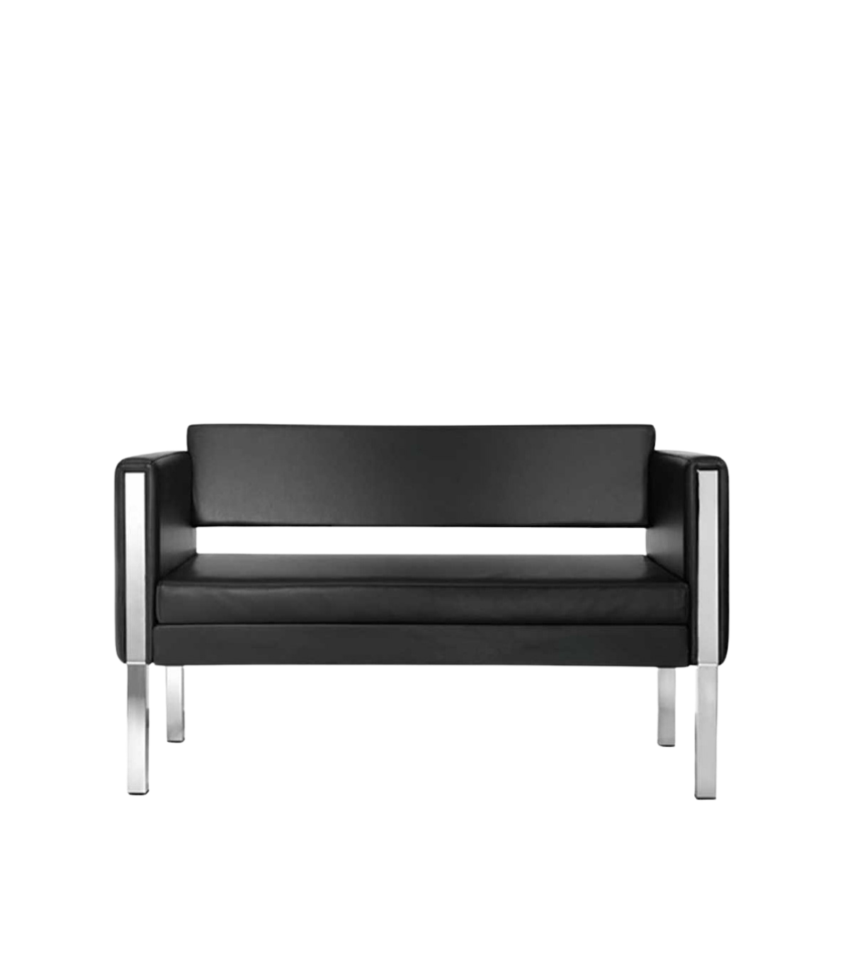 - Gambe quadrate e profili dei braccioli in acciaio cromato.