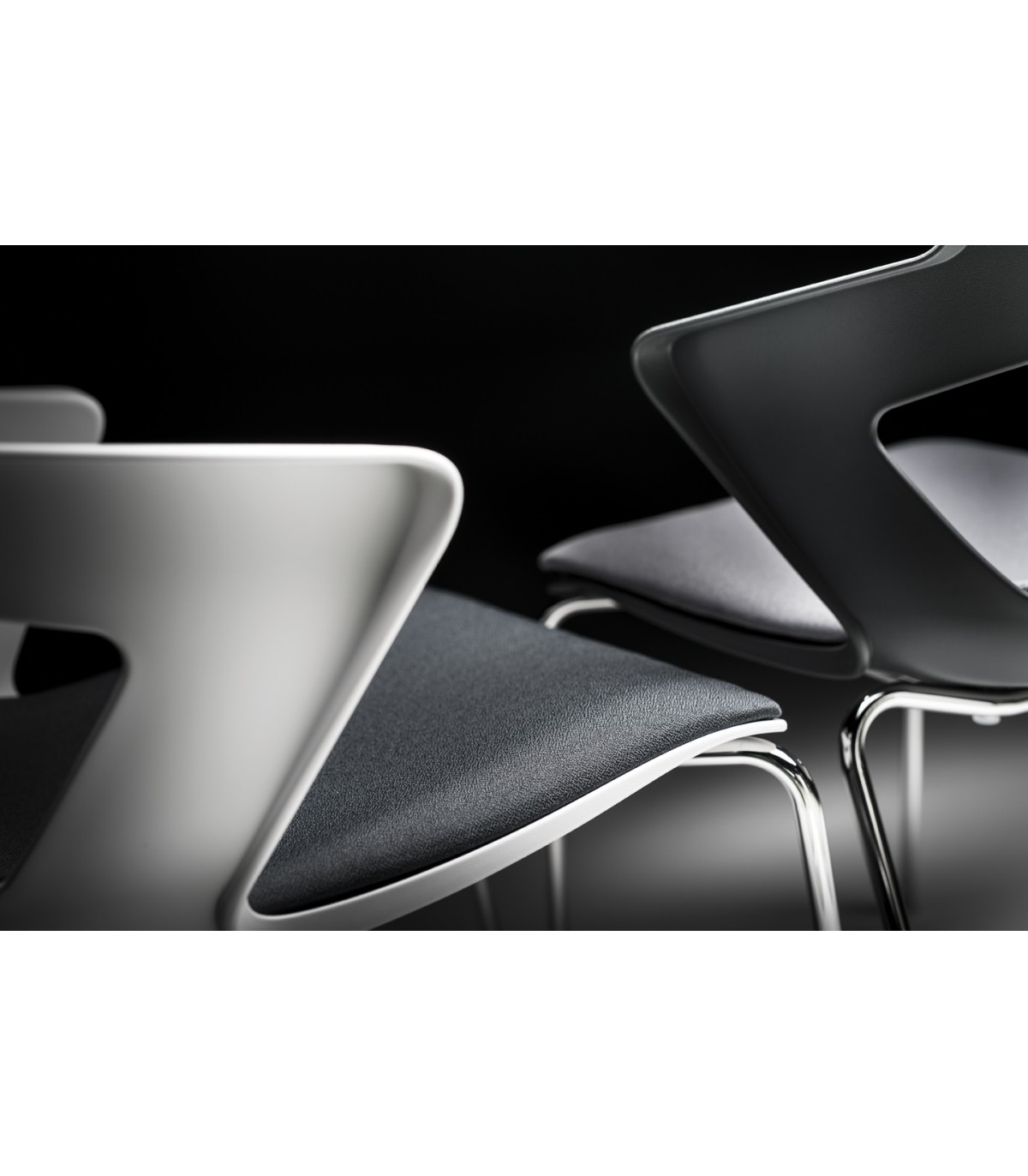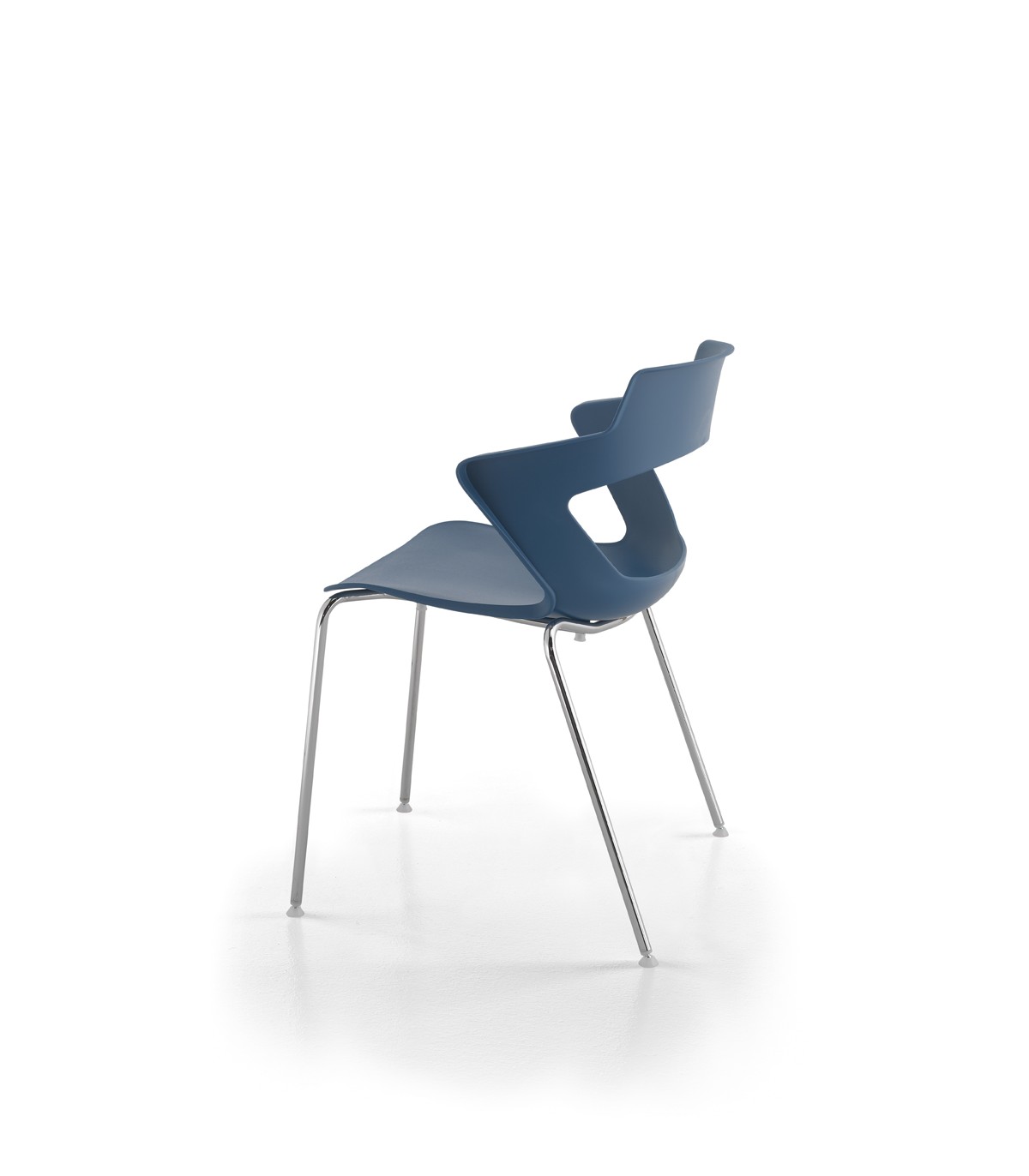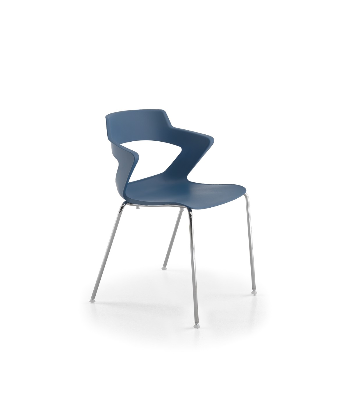 Schienale/Sedile: Monoscocca in plastica, polipropilene (PP) disponibile in 8 colori a catalogo bianco, senape, tortora, rosso, verde, blu, grigio e nero.