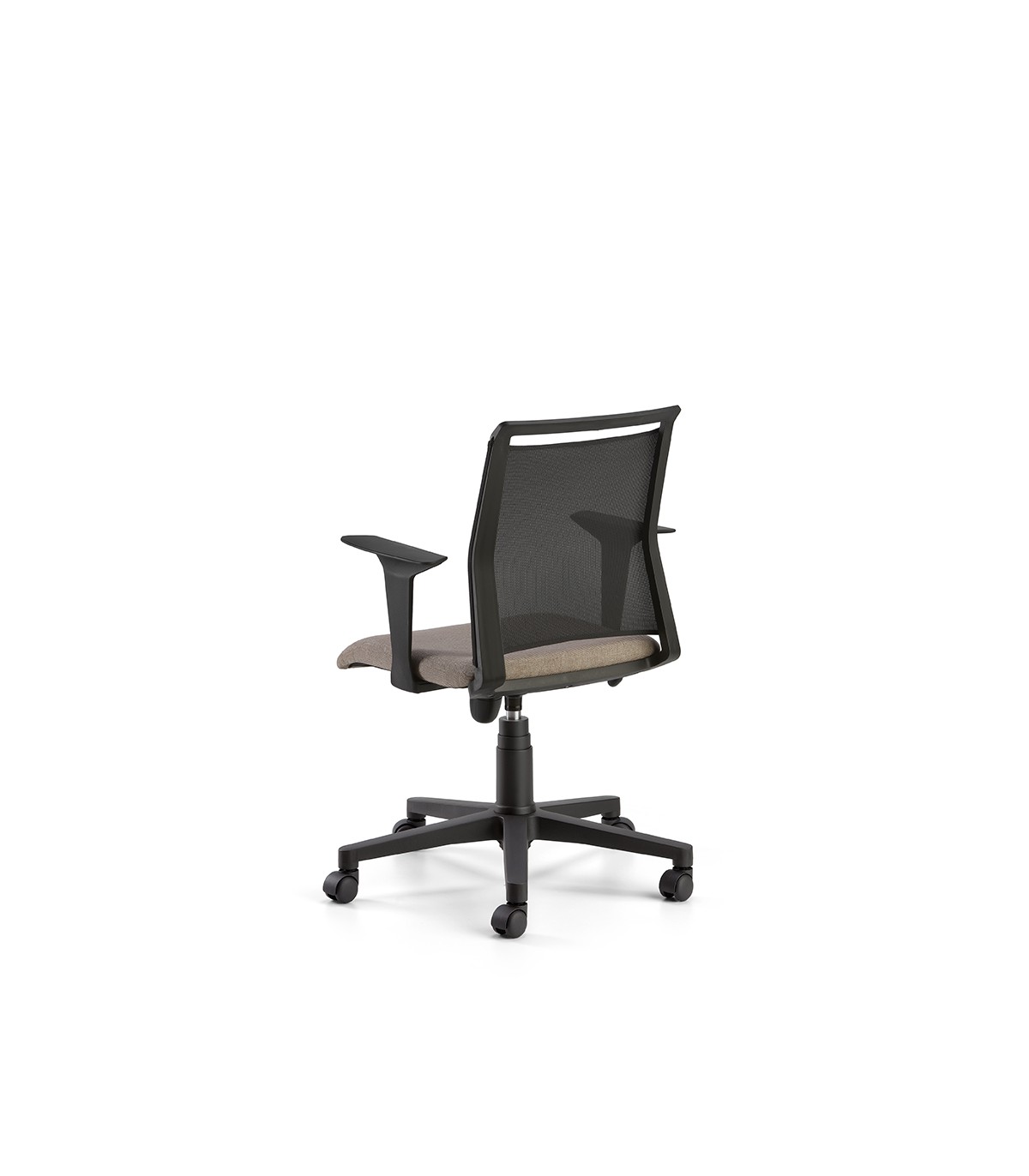 La poltrona è dotata di schienale in rete e sedile imbottito in poliuretano e disponibile in 6 categorie di tessuto.