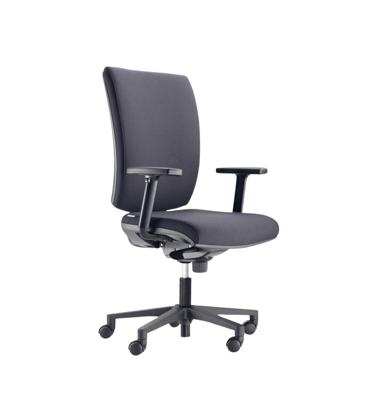 Poltrona ergonomica con schienale in resina poliuretanica e braccioli regolabili in altezza. disponibile con kit ruote gommate: 5 ruote maxi autofrenanti gommate, adatte per superfici rigide quali legno, cemento, piastrelle, pvc, ecc.